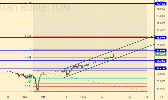 Спотовый рынок начинает оживать. Мы вышли из диапазона и скорее всего продолжим расти. Поэтому, будем использовать текущие уровни и откаты для покупок американской валюты. Также валюту можно покупать и в наличной форме. Обращает на себя внимание гигантский спред между фьючерсом и спотом. Страхи на счет закрытия возможности торговать фьючерсом набирают обороты.