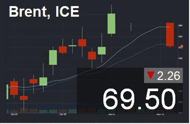 Цена в долларах за баррель. Для пересчета в доллары за тонну нефти марки Brent, необходимо цену умножить на 7,59.