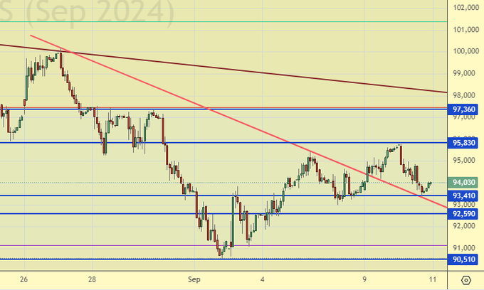 Продажа: нет. Кто в позиции от 95300, держите стоп на 96300. Цель: 87300.