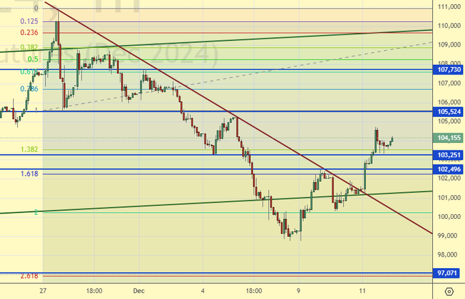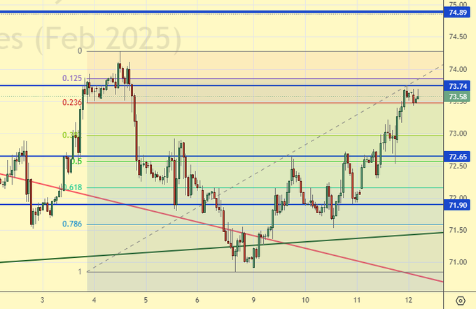 Сегодня у нас заседание ЕЦБ. Вряд ли пара сильно отреагирует, учитывая, что 18 декабря решение по ставке ФРС. Но если будет дан сигнал о приостановке цикла смягчения, то это может привести к росту. В целом же евро будет непросто перейти к росту, так как Европа страдает и от недостатка ресурсов, и от увеличения расходов на оборону.