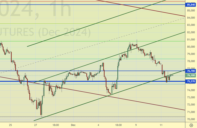 Покупка: нет. Кто в позиции от 76000, держите стоп на 75000. Цель: 100000?!