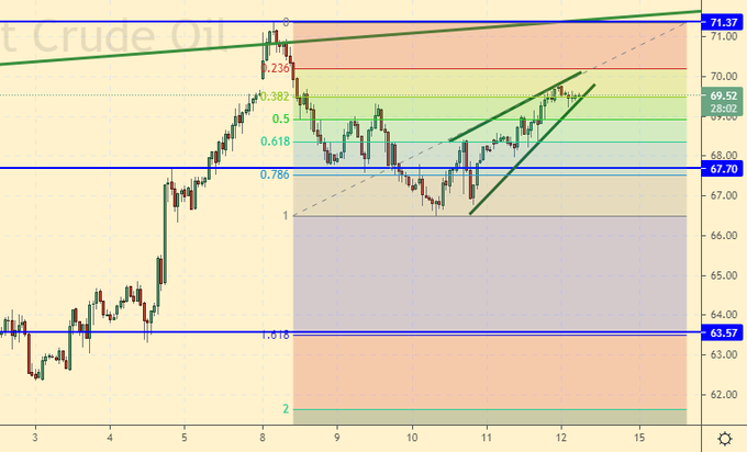 Продажа: сейчас. Стоп: 70.80. Цель: 63.60. Кто вошел от 69.30, перенесите стоп на 70.80. Цель: 63.60. Считайте риски!
