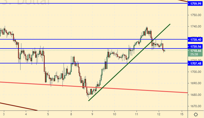 Покупка: нет. Кто вошел от 1710, держите стоп на 1711. Цель: 1760.