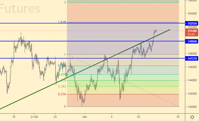 Байден дал американцам очередную кучу денег. Фондовый рынок отреагировал на это ростом. Оказывается, при капитализме граждане могут получить от государства деньги просто так. Размякли в Белом доме, а может не хотят терять власть под напором голодных масс. Индекс выше 150000, нас затягивает в продажу. Предлагаем начать покупки с малого и добавлять по мере роста вплоть до 155000. Есть некоторое недоверие к этой теории с движением на 165000.