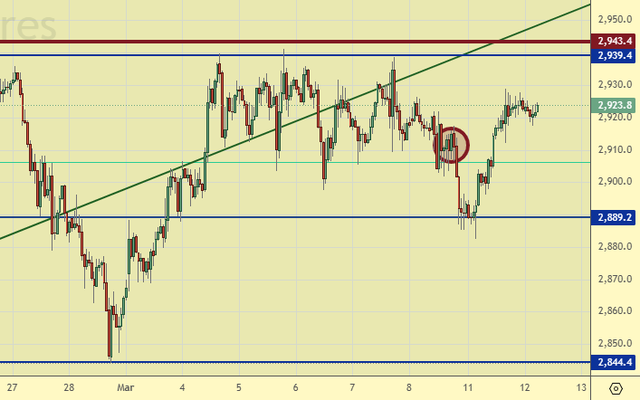 Продажа: нет. Кто в позиции от 2918, держите стоп на 2942. Цель: 2500 (2120).