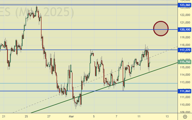 Продажа: при подходе к 120000. Стоп: 122000. Цель: 105000. Или сейчас (115750). Стоп: 118600. Цель: 93000.