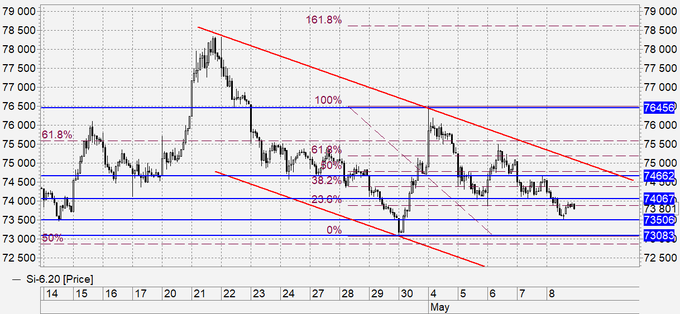 Покупка: в случае роста выше 74000. Стоп: 73400. Цель: 85000.