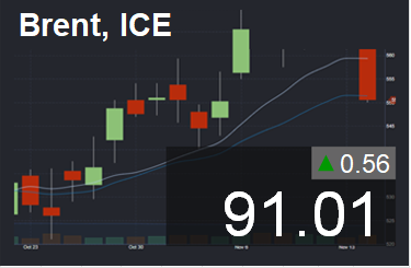 Цена в долларах за баррель. Для пересчета в доллары за тонну нефти марки Brent, необходимо цену умножить на 7,59.