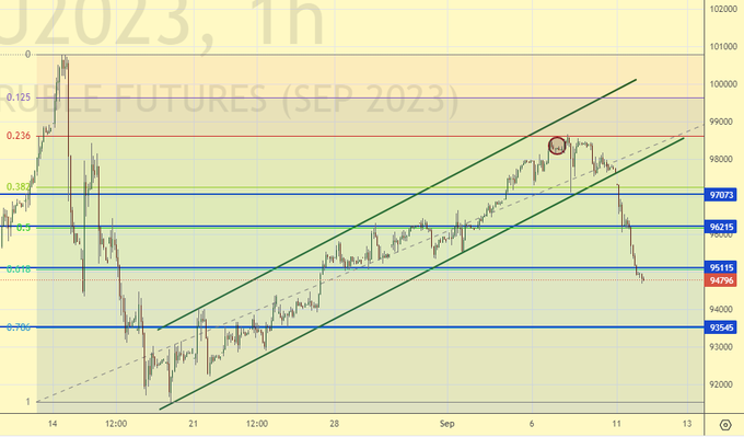 Продажа: нет. Кто в позиции от 98.20, перенесите стоп на 97.30. Цель: 90.00 (пересмотрена).