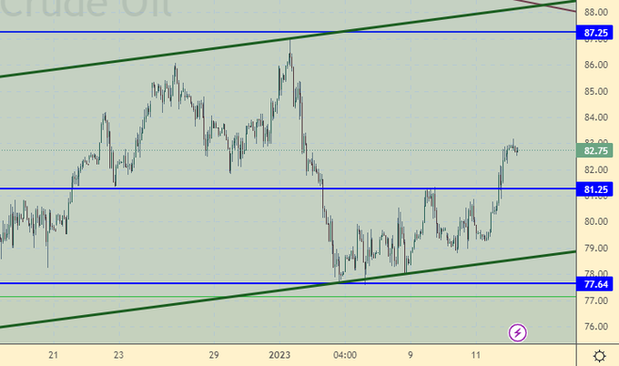 Сегодня ситуация располагает к тому, чтобы увидеть небольшой откат в район 81.00, после чего восходящее движение продолжится. При этом продажи от 85.00 выглядят интересно.