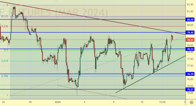 Продажа: сейчас (78.91). Стоп: 79.60. Цель: 65.00.