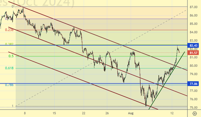 Объяснять движения на рынке нефти только напряженностью на Ближнем Востоке: слишком много чести евреям и персам, чтобы из-за их малозначимых государств весь рынок ходил ходуном. Фундаментальное влияние на рынок нефти данных государств крайне мало. Иран, там кое-как еще что-то может, а вот Израиль… если только через кровные узы с Нью-Йорскими кланами. Скорее, движения на рынке как-то лягут на подозрения в снижение экономической активности в США, а вот там не все так и ужасно. Свои 2.4% роста ВВП за год скорее всего «амеры» себе нарисуют. Кроме того ОПЕК (см. отчет за август) сохраняет прогноз по дефициту предложения. Поэтому и видим возврат выше 80.00.