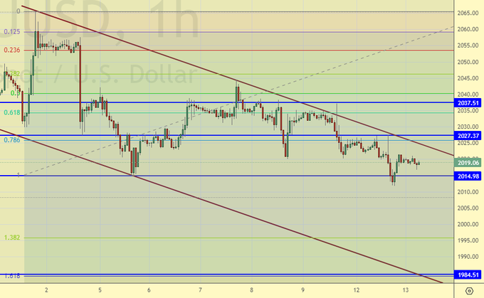 Новый локальный минимум нарисовали вчера. Против ожиданий, быстрого обвала не произошло. Возня с некоторым медвежьим уклоном продолжается. А хочется, чтобы мы пошли уже к нижней границе канала в район 1985, и предпосылки для этого все у нас в наличии.