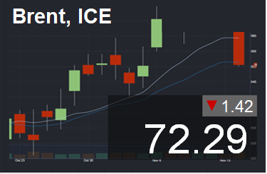 Цена в долларах за баррель. Для пересчета в доллары за тонну нефти марки Brent, необходимо цену умножить на 7,59.
