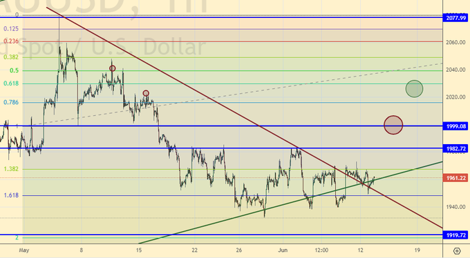 Рынок продолжает находиться в диапазоне перед завтрашним заседанием ФРС. Скорее всего мы продолжим стоять почти на месте сегодня и завтра весь день до объявления решения по ставке. Продолжаем считать, что рост к 2000 надо использовать для продаж. И только подъем выше 2030 способен перевернуть ситуацию вверх.