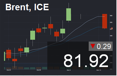 Цена в долларах за баррель. Для пересчета в доллары за тонну нефти марки Brent, необходимо цену умножить на 7,59.