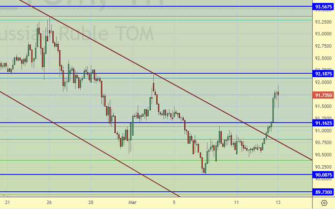 Рубль вчера упал, так что мы не зря поджали стоп ордера. Что имеем: имеем сильные подозрения, что рубль на фоне роста дефицита бюджета в январе – феврале до 1.4 трлн. рублей будет подвергнут некоторому ослаблению к 100.00. Да, есть риск, что вчерашний рост провокация, но мы не можем не реагировать на данный ход вверх.