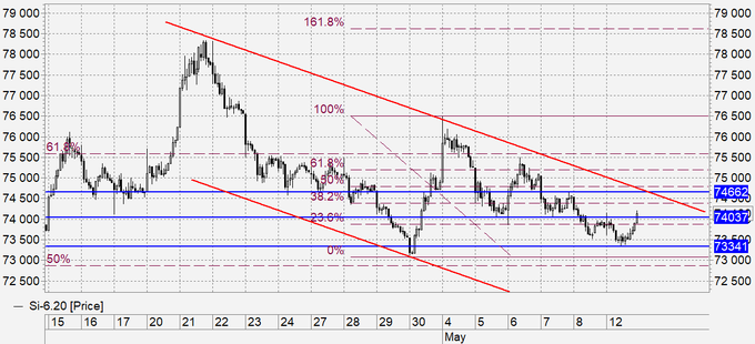 Покупка: после роста выше 73.80. Стоп: 72.80. Цель: 81.00.
