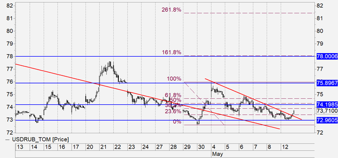 Продажа: при касании 72.80. Стоп: 73.80. Цель: 70.00.