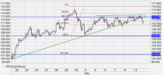 Вчера продавцы отстояли уровень 114000, что позволило на фоне падения рубля пройти ниже 112000 и создать предпосылки для движения к 107000 и в перспективе к 102000.