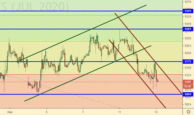 Пшеница (июльский контракт, CME Group, исполнение 14.07.2020)