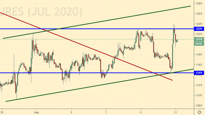 После выхода данных цены немедленно перешли к росту, что говорит о том, что прогноз на новый сезон оказался в рамках ожиданий и ничего страшного трейдеры в нем не узрели. Для того чтобы закрепить успех цены должны сегодня уйти выше 320.0, тогда ситуация станет более определенной и можно будет рассчитывать на восстановление рынка к уровню 350.0 центов за бушель. В противном случае, мы можем впасть в нехарактерную для данного периода времени хандру, претендовать следующие полтора месяца на рост, но так его и не показать, что приведет в перспективе к крайне низким ценам на новый урожай этой осенью.