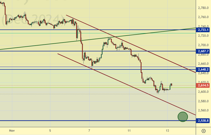 Продажа: при подходе к 2648. Стоп: 2668. Цель: 2550. Кто в позиции от 2660, перенесите стоп на 2625. Цель: 2550.