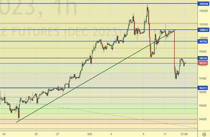 Продажа: нет. Кто в позиции от 97.44, держите стоп на 99.70. Цель: 90.00.