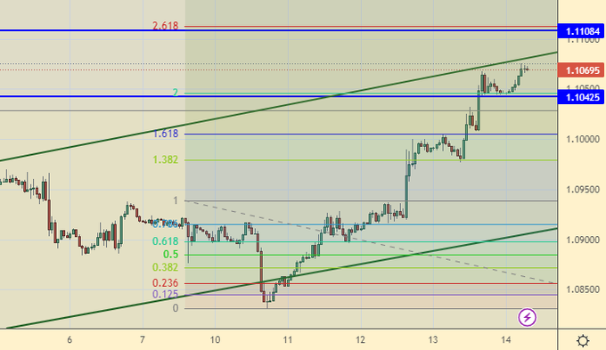 Видим гипертрофированный однонаправленный рост. Ситуация должна закончится откатом. Мы выполнили свою цель на 1.1020. Теперь будем рассчитывать на падение к 1.0900, после чего восходящее движение должно продолжиться.
