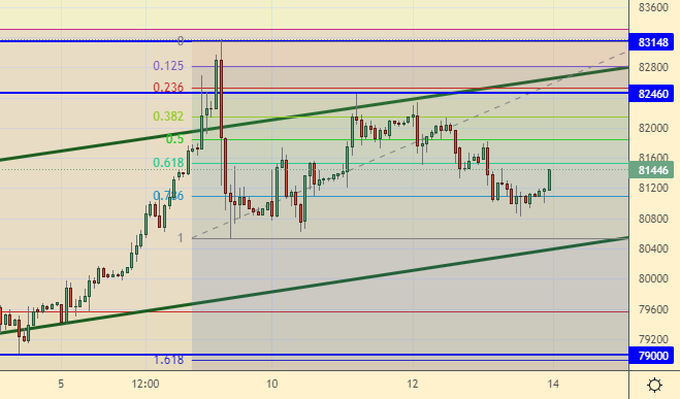 Продажа: нет. Кто в позиции от 82400, перенесите стоп на 82300. Цель: 79000.