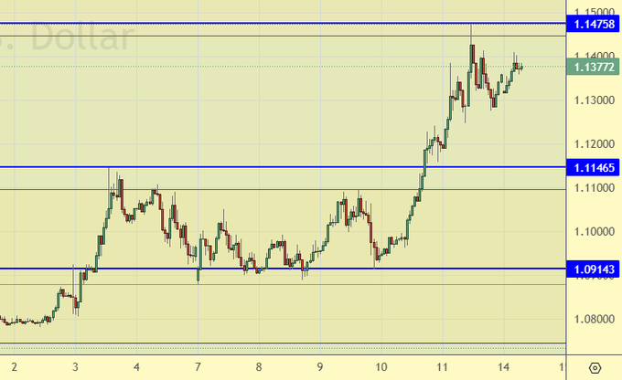 Продажа: сейчас (1.1377). Стоп: 1.1430. Цель: 1.1111.