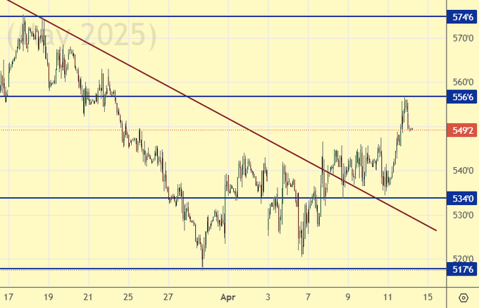 Пшеница (майский контракт, CME Group, исполнение 14.05.2025)