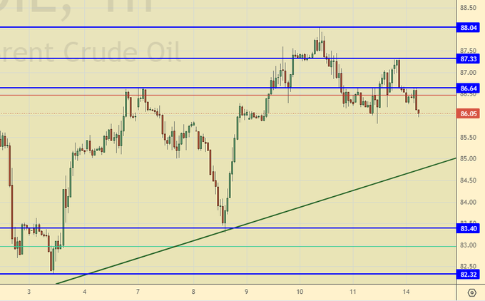 Котировки продолжают находиться выше 85.00, однако есть предпосылки для тестирования данного уровня. В случае успеха продавцов цены могут уйти к 84.00.