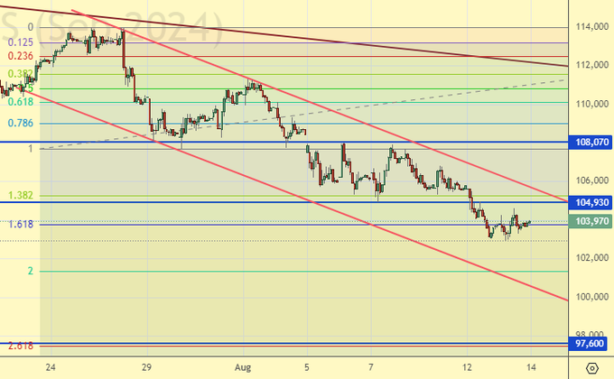 Продажа: нет. Кто в позиции от 114100, перенесите стоп на 106300. Цель: 96600.
