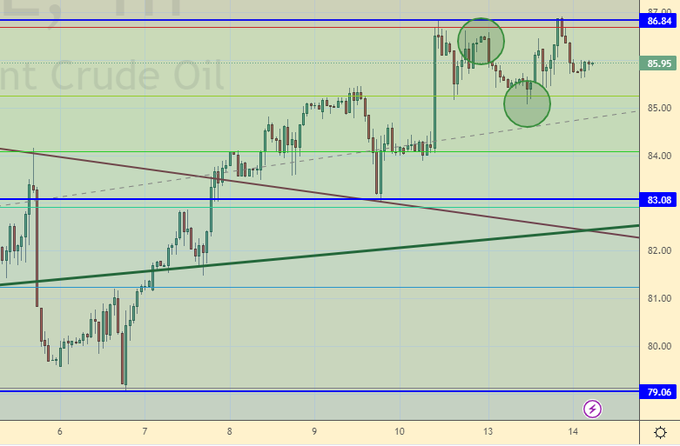 Покупка: сейчас. Стоп: 84.20. Цель: 100.00. Кто в позиции от 85.00 и 86.00, перенесите стоп на 84.20.