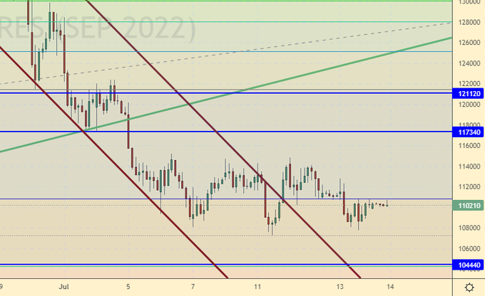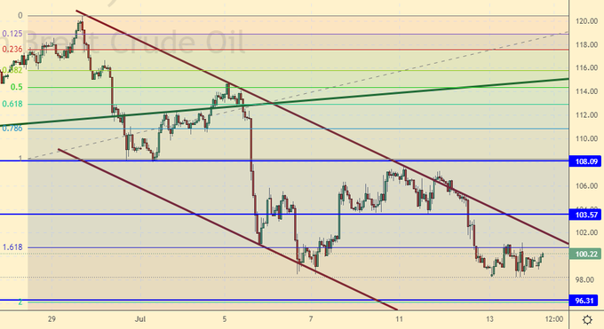 Трейдеры внимательно наблюдают за лентой новостей и визите Байдена в Саудовскую Аравию. Если американцам удастся уговорить саудитов увеличить добычу, то цены пойдут к 90.00, если же этого не произойдет, то район 108.00 будет подвергнут новой проверке на прочность.