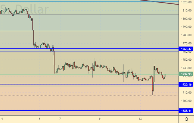 На фоне выхода данных по инфляции в США, которые оказались хуже ожиданий, группа лиц по предварительному сговору решила зафиксировать прибыль по факту выхода новости, но так как разгон инфляции в США пока продолжается, золото продолжат продавать. Доллар пока привлекательнее. Шансы на то, что ставка 27-го числа в США вырастет на 0.75% весьма высоки. Мы не сможем пройти выше 1750 в данной ситуации.