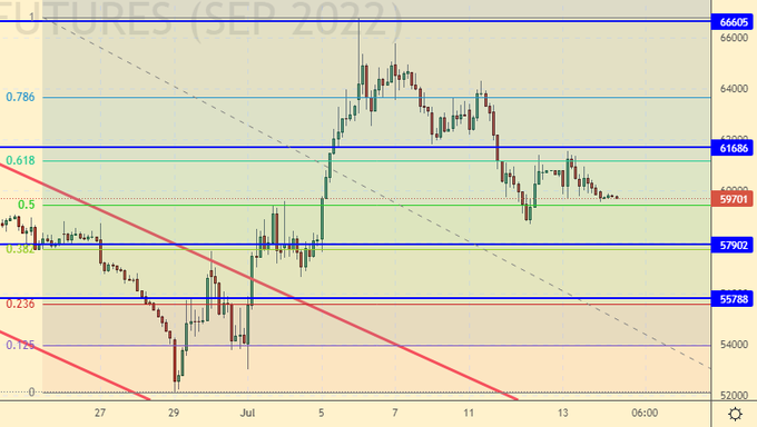Покупка: при откате к 56000. Стоп: 54400. Цель: 75000. Если вы вошли от 59000, перенесите стоп на 59400. Цель: 75000.