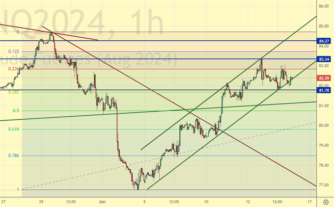 Рынок залез на 82.00 и пока не желает падать. Есть подозрения, что быки продолжат формировать поддержку для того, чтобы оттолкнуться от неё и попробовать пройти к 90.00.