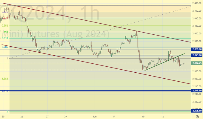 Продажа: нет. Кто в позиции от 2358, перенесите стоп на 2353. Цель: 2100.