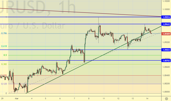 У быков есть небольшое преимущество. Оно станет более сильным после роста выше 1.1000. Пока этого не произошло, можно говорить о том, что пара может при выходе статистики сегодня о высокой инфляции в США пойти вниз. Напомним, что в следующую среду состоится заседание ФРС.