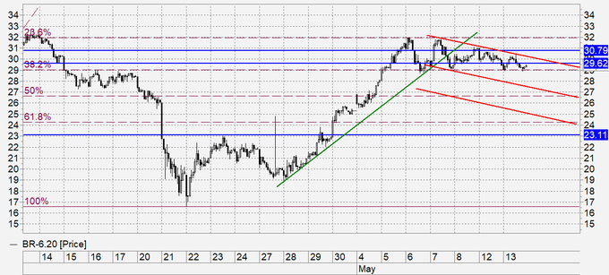 Продажа: нет. Кто в позиции от 31.00, держите стоп на 31.10. Цель: 25.10 (10.00?).
