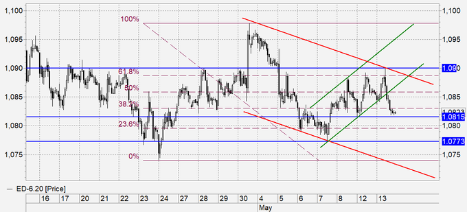 Уровень 1.0900, который мы выбрали в качестве переключателя для определения растущего и падающего тренда пока остается нетронутым, значит, смотрим по паре вниз.