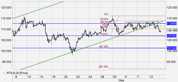 Учитывая неприятные технические картинки, которые сложились в ряде ведущих бумаг после оптимистичного восстановления котировок в течение последних двадцати дней, можно ожидать дальнейшего снижения индекса с падением в район 102000. Если инфляционного давления не будет, то котировки акций вплотную займутся отображением текущего непростого положения дел, учитывая в том числе и будущую прибыль, точнее, её отсутствие. Без роста стоимости нефти рынок не сможет показать новые локальные максимумы в ближайшие недели.