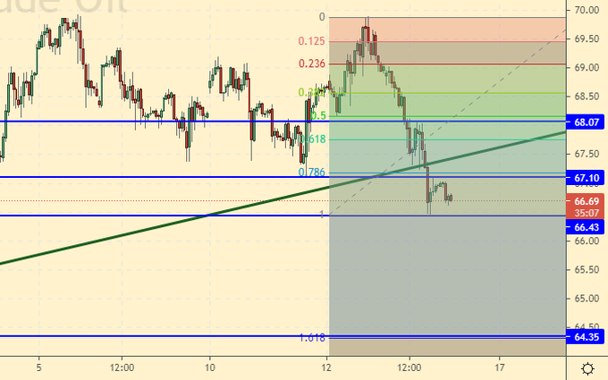 Получив позитивные данные по рынку труда в США нефть начала уходить вниз из-за страха перед возможным усилением доллара. Продавцы на утро пятницы находятся в хорошей позиции, они даже могут позволить ценам сегодня вырасти до 67.50 – 67.70, после чего будет предпринята еще одна атака. У рынка есть неплохие шансы на посещение отметки 64.50.