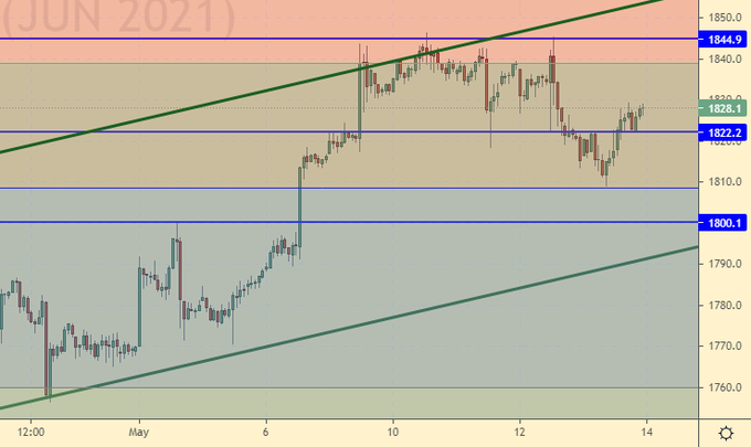Пока покупатели сдаваться не хотят. Есть риск того, что рост инфляции в США лишь всплеск. Похоже значительная часть участников рынка верит в это, иначе золото бы уже летело вниз. Пока сценарий посещения 1890 не сбрасываем со счетов.
