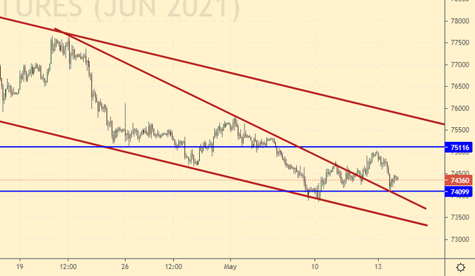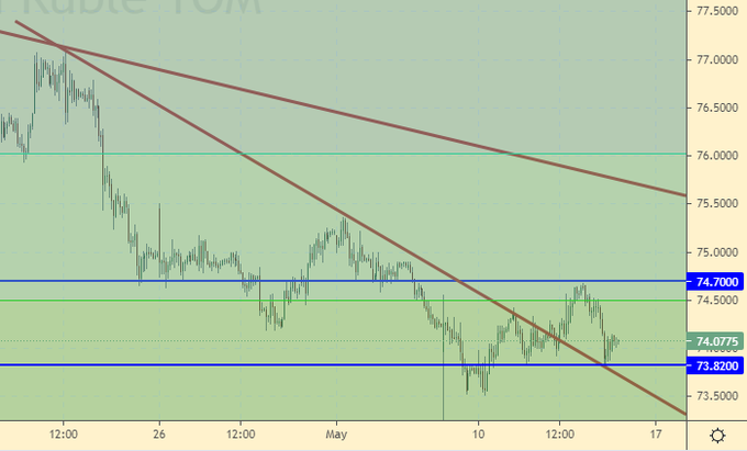 Паре понравился уровень 74.00 и отходить от него она пока не хочет. Вчерашнее укрепление национальной валюты вызывает больше вопросов, чем ответов. Ситуация на рынке равновесная, преимущества нет ни у одной из сторон.