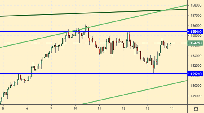 Покупка: при касании 153000. Стоп: 152000. Цель: 160000.
