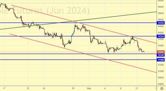 Продажа: нет. Кто в позиции от 93.04, перенесите стоп на 92.80. Цель: 89.40.