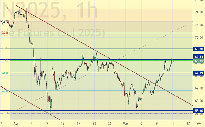 Созданная ранее медвежья картина по нефти, а это произошло за счет наращивания добычи странами ОПЕК+ на фоне неясных экономических перспектив, подвергается проверке на прочность. У продавцов еще есть шансы на то, что рынок все же уйдет куда-то к 55.00. Когда появится этот более высокий спрос в будущем, на который все надеются, не ясно.